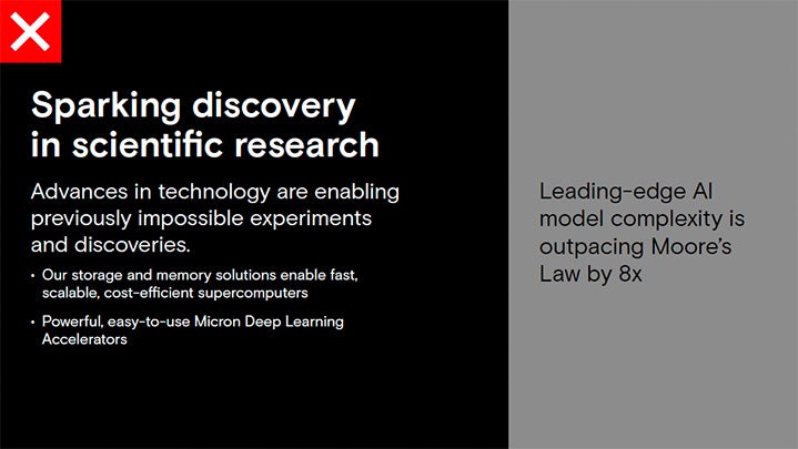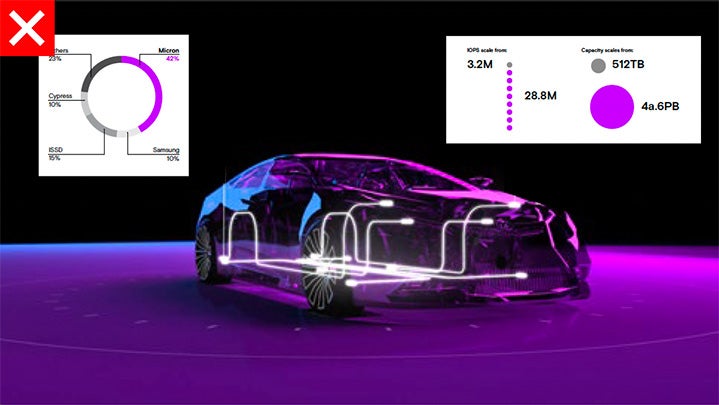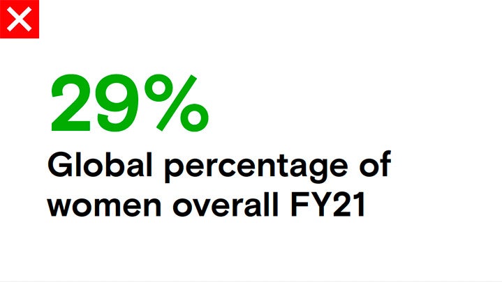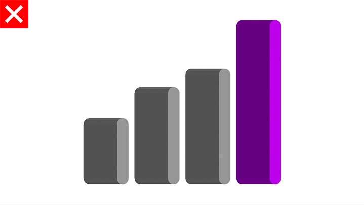 Use gray tints plus one of our data visualization colors to emphasize the most important data point in basic data visualizations. Gray visualizations allow the color to draw the viewer’s attention. Use the accent color when referring to positive Micron-specific data or to highlight important information.