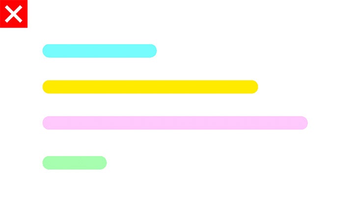 Do not overuse colors. Use color minimally and with the intention of highlighting important data.